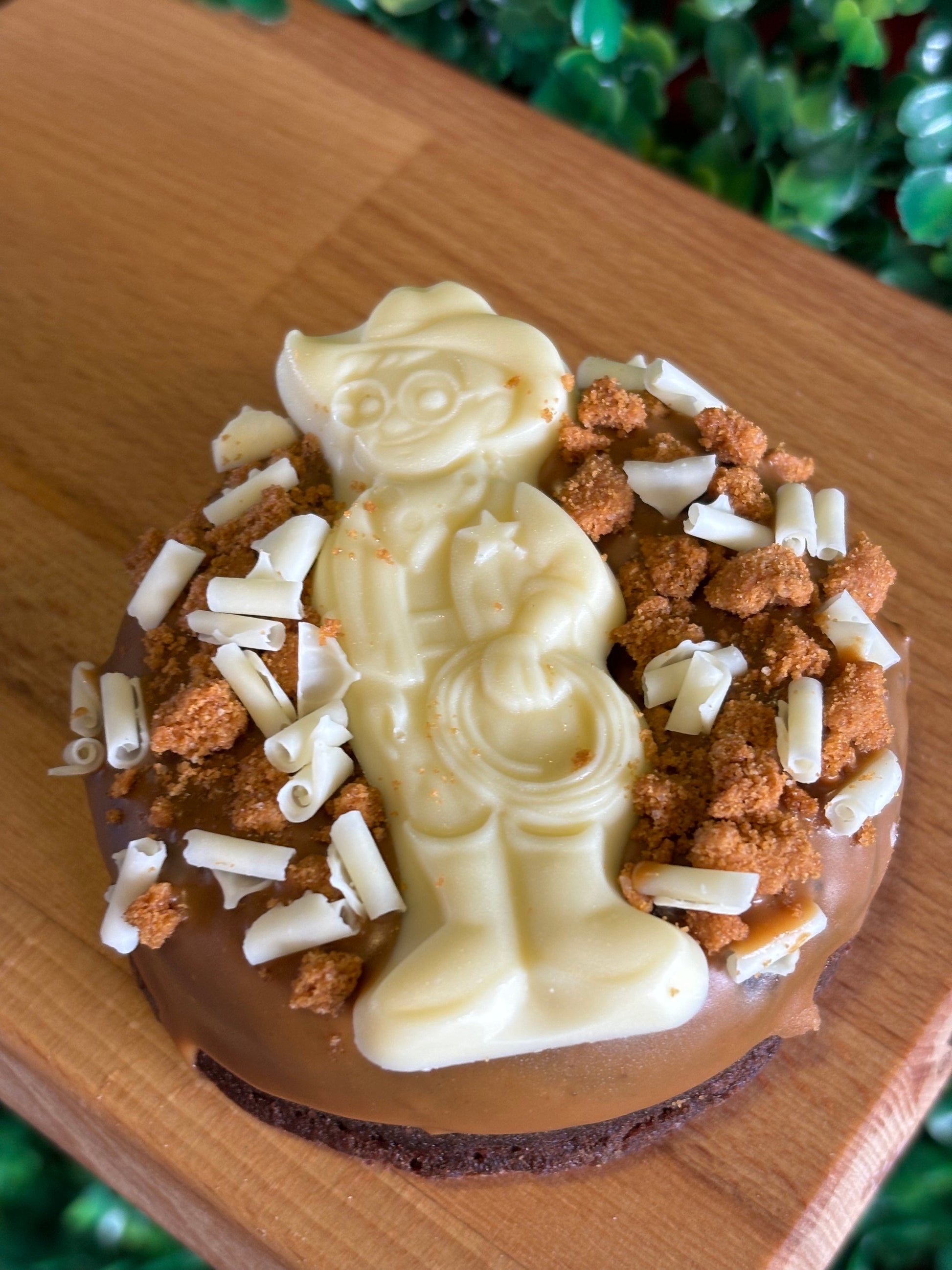 Our signature milk chocolate chip brownie in the shape of a do-nut. Dipped into Lotus Biscoff spread and topped with a Milky Bar Kid, Lotus Biscoff crumb and white chocolate blossoms