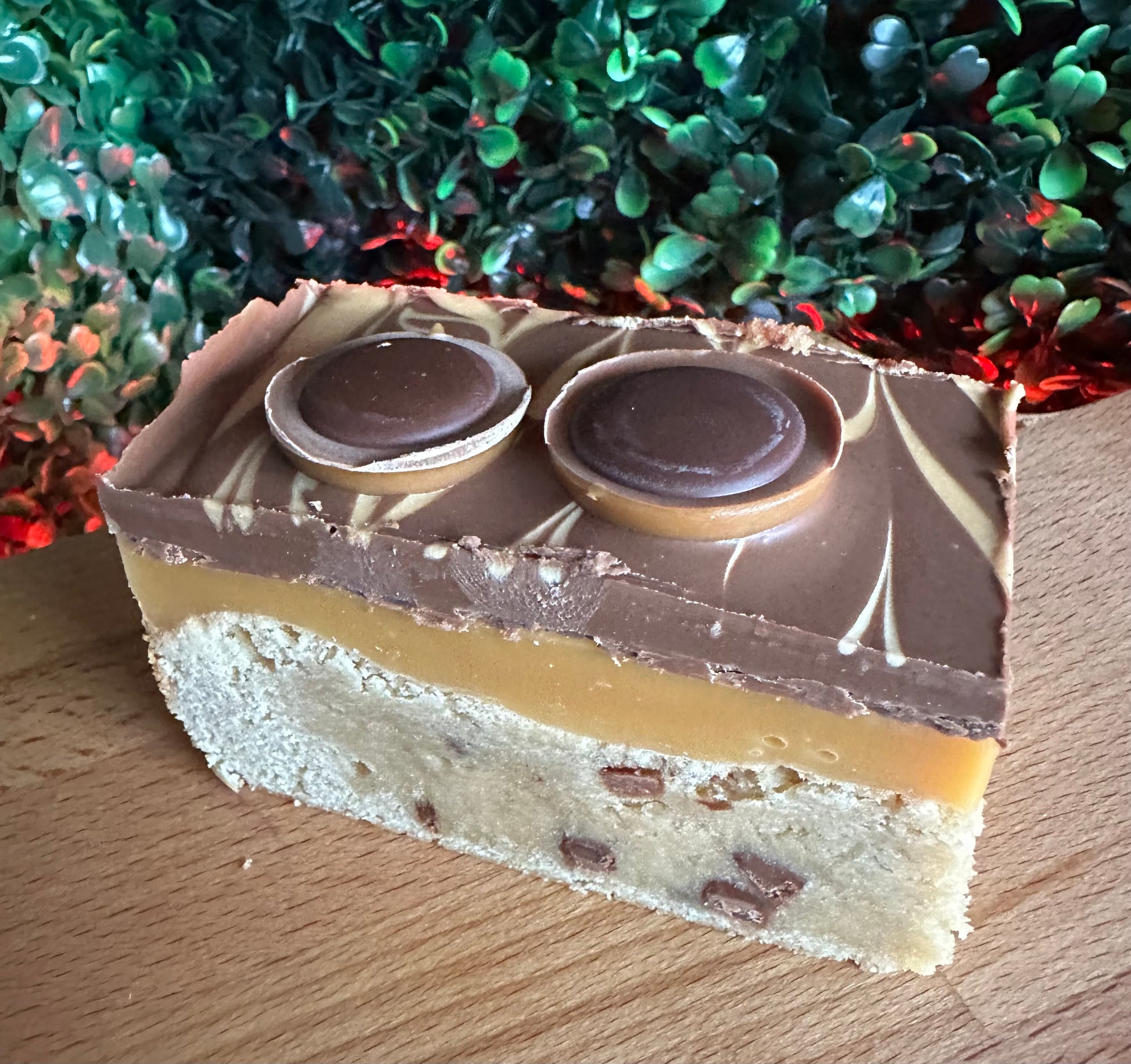 Soft chocolate chip Blondie topped with a layer of homemade caramel and smothered with milk chocolate & caramel and topped with Toffifee’s!